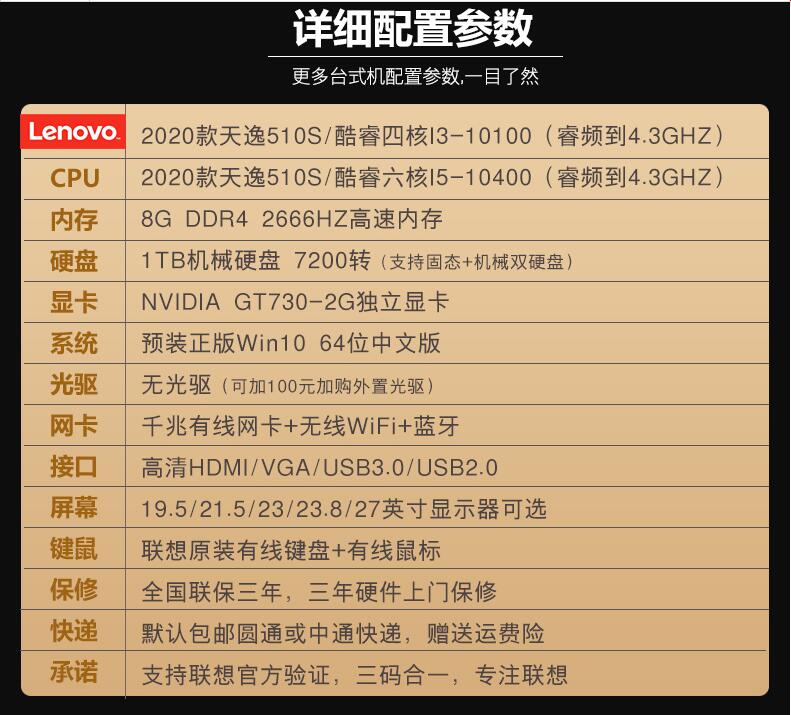 聯(lián)想臺式機(jī)電腦天逸510S/510PRO 十代六核I5-10400/四核I3 家用辦公商用財務(wù)炒股網(wǎng)課游戲設(shè)計全整套迷你主機(jī)